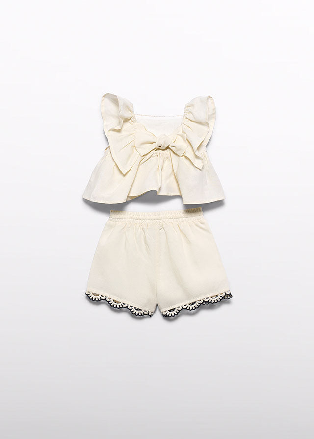 5271- Cream bermuda set aplique